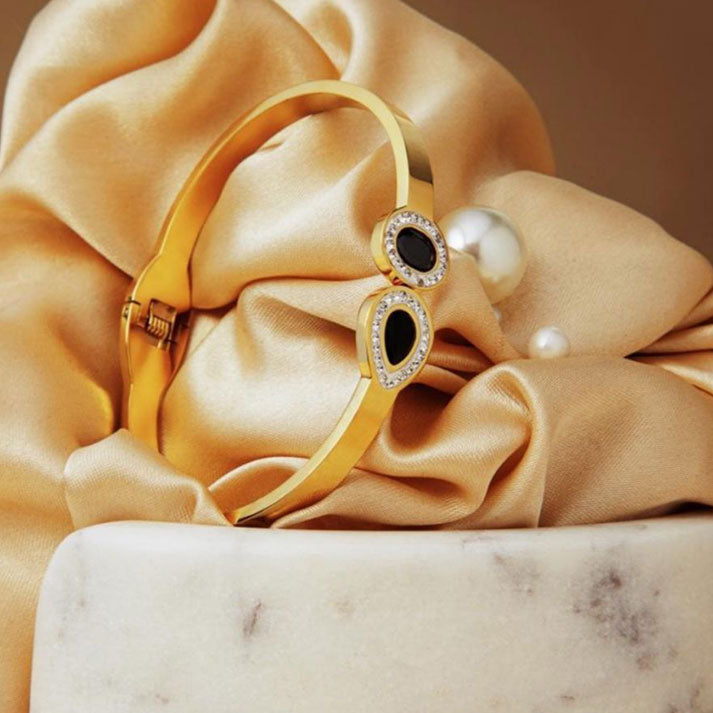 Chic Black Stone Gold Bracelet – Luxe Mulher | Elegant Modern Jewelry